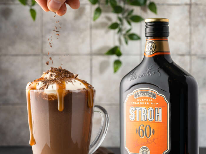 Heitt Stroh súkkulaði með karamellusósuHvernig væri að prófa heitt Stroh súkkulaði með karamellusósu? Tilvalið til að prófa í þessum kulda.